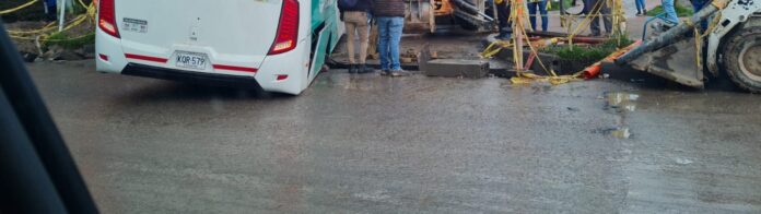 En efecto hoy martes un bus de Transportes Esmeralda quedó anclado en el hueco al tratar de girar hacia la transversal 22.