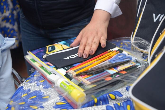 Los kits están conformados por una maleta, frasco para bebidas, cuadernos, cartuchera, lápices, borrador, colores, tijeras, colbón y esferos.