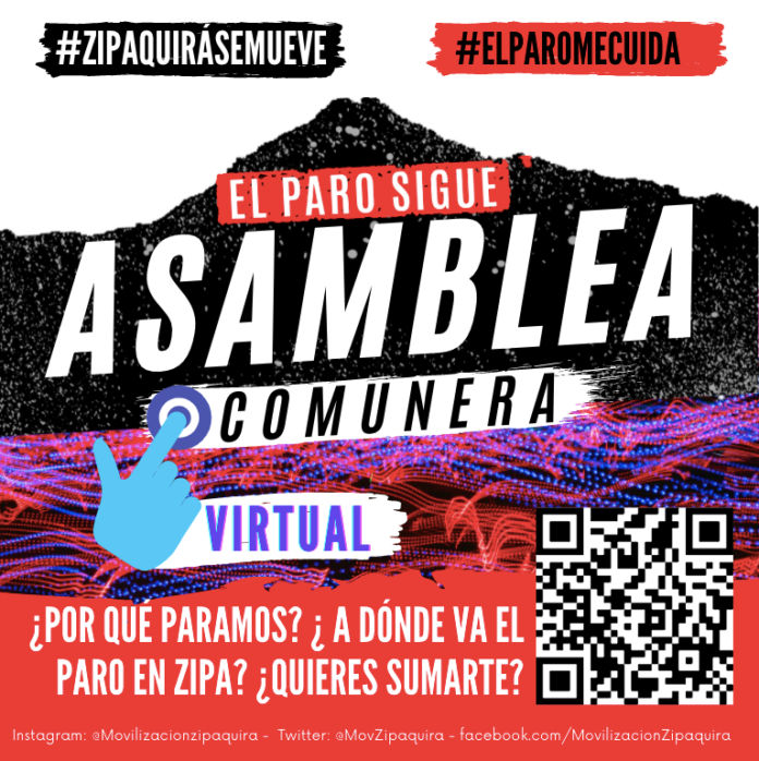 Los zipaquireños que quieran participar de estas asambleas lo pueden hacer a través del siguiente enlace https://forms.gle/dfY19ZXFBBVX9TTm9 donde podrán expresar las razones de ámbito Nacional y local por las que está apoyando el Paro Nacional, las actividades futuras que proponen y que pueden apoyar como como colectivo y construir entre todos la agenda.