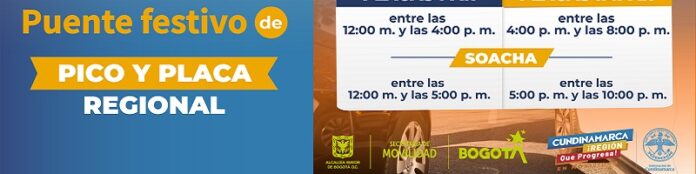 Asimismo, el lunes 22, habrá Pico y Placa Regional en las ocho entradas a Bogotá, donde el ingreso por la Autopista Sur tiene un horario diferente: