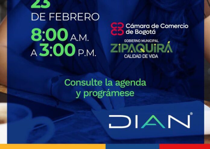 La Dirección Seccional de Impuestos de Bogotá, con el apoyo de la alcaldía de Zipaquirá y la Cámara de Comercio de Bogotá, realizarán el 23 de febrero, de 8:00 a.m. a 3:00 p.m., la jornada especial de atención y capacitación en Zipaquirá.