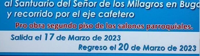 Para garantizar la continuidad en las obras y terminar el segundo piso la Parroquia está organizando una peregrinación al Señor de los Milagros en Buga, del 17 al 20 de marzo, donde se hará un recorrido por el eje cafetero y tendrá un costo de $790.000. “La idea es que de ahí tengamos un recurso y seguir haciendo actividades, como la “tejatón” para recibir donaciones de dinero y comprar las tejas. Vamos a empezar toda una campaña para terminar las obras,” afirmó.
