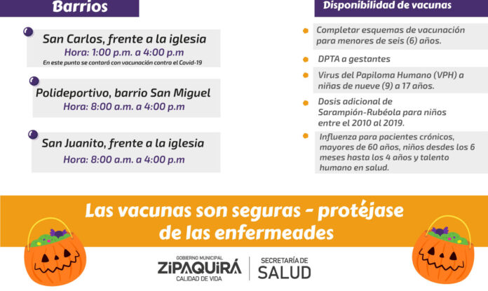 Este sábado en Zipaquirá se efectuará la jornada de vacunación de 8:00 a.m., a 4:00 p.m., en diferentes puntos del municipio.