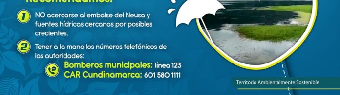 -No acercarse al embalse del Neusa y a las fuentes aledañas ante el riesgo de niveles altos y posibles crecientes.