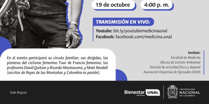 El evento se realizará en el auditorio López Pumarejo – Uriel Gutiérrez Cra 45 # 26-85., donde participará su círculo familiar; sus dirigidas, las pioneras del ciclismo femenino, Tour de Francia femenino; los profesores David Quitian y Ricardo Montezuma, y Matt Rendell, escritor de Reyes de las Montañas y Colombia es pasión.