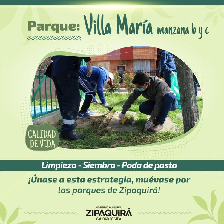 Con el fin de continuar con la estrategia de recuperación de los parques del municipio, fomentando la cultura de respeto, aseo y cuidado al ambiente, se cumplió la tercera jornada de limpieza de parques. La actividad estuvo a cargo de la Empresa Frigorífico y Plaza de Ferias de Zipaquirá; Empresa de Acueducto, Alcantarillado y Aseo; la secretaría de Hacienda; la secretaría de Seguridad y Convivencia Ciudadana y la secretaría General.