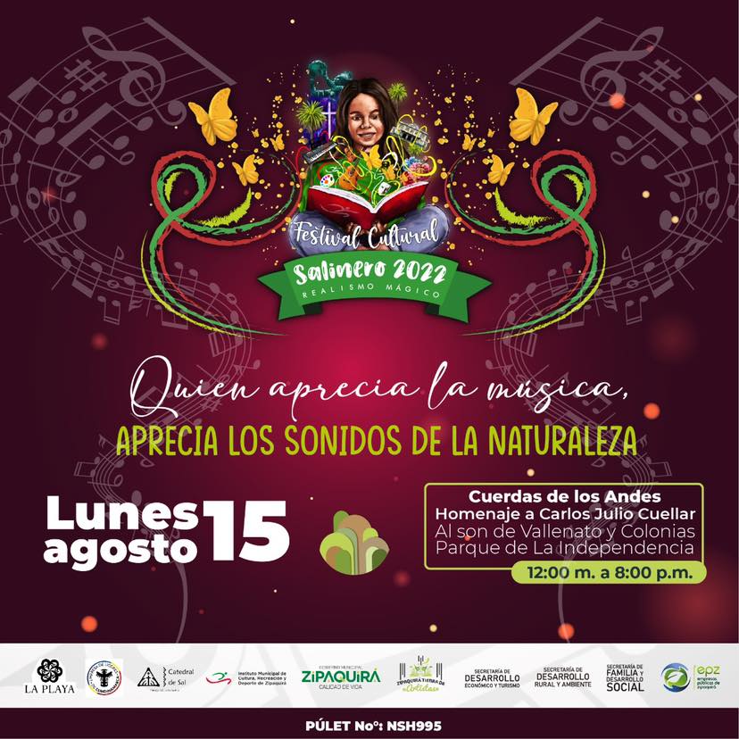 -Lunes 15 de agosto: Cuerdas de los Andes, homenaje a Carlos Julio Cuellar. Al son de vallenato y colonias.