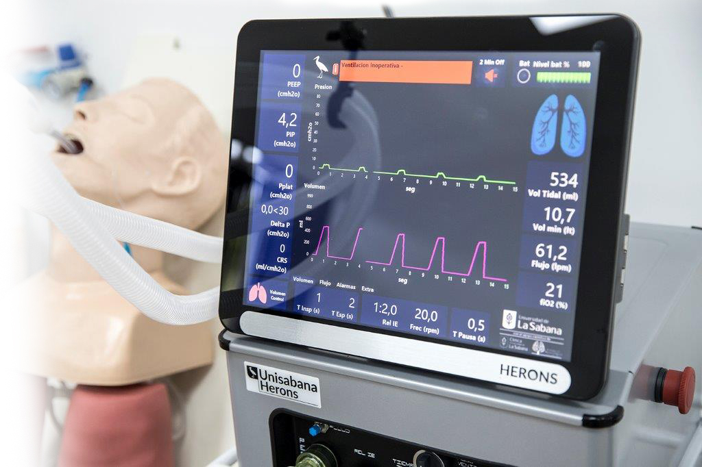 El ventilador mecánico “UNISABANA-HERONS” terminó con éxito la primera fase de pruebas clínicas en humanos en agosto del 2020 donde se validó la eficacia, seguridad y usabilidad del mismo, usado en 5 pacientes con causas variadas de insuficiencia respiratoria. Así lo valida el INVIMA mediante el Acta N° 8 del 14 y 15 de abril del 2021.