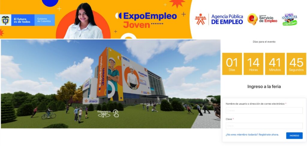 Es una jornada dedicada a jóvenes entre 18 y 28 años, en la cual podrán ingresar a una plataforma virtual con cobertura nacional, la cual tendrá entornos 3D y 2D con 33 stands regionales en los cuales se ofrecen más de 30 mil oportunidades laborales para los jóvenes colombianos, así como también una serie de conferencias y talleres de orientación ocupacional en directo.