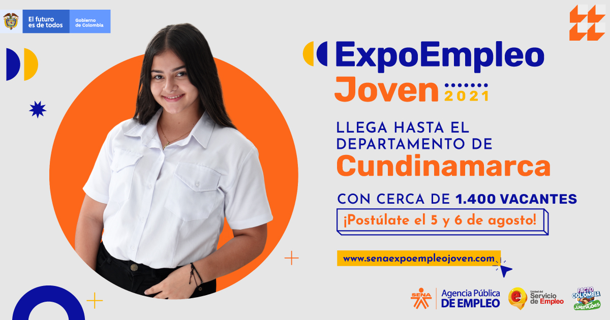 La Feria Virtual Expoempleo Joven 2021, se realizará durante hoy 5 y mañana 6 de agosto, son cerca de 1.400 posibilidades de trabajo en Cundinamarca.