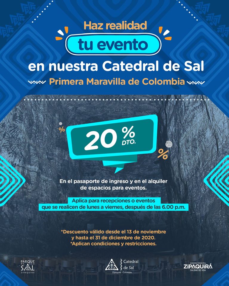 Con el fin de facilitar que los zipaquireños puedan ingresar con un precio especial a visitar la Primera Maravilla Turística de Colombia, los miércoles hasta el 30 de diciembre, los niños menores de 12 años ingresarán gratuitamente y los adultos pagarán solo $10.500. “Es el deseo del señor Alcalde que ojalá todos los zipaquireños puedan conocer o visitar su Catedral y por eso diseñamos esta alternativa para los días miércoles. Adicionalmente para los familiares que vengan de fuera se les hará un descuento del 20% en la boleta. Hoy el tiquete para cualquier turista nacional cuesta $60.500 y tenemos una promoción especial en $38.500. Para el caso de los zipaquireños el único requisito es presentar la cédula que lo acredite como tal” dijo a Gente Activa el gerente de Catedral de Sal, Orlando Sotelo.