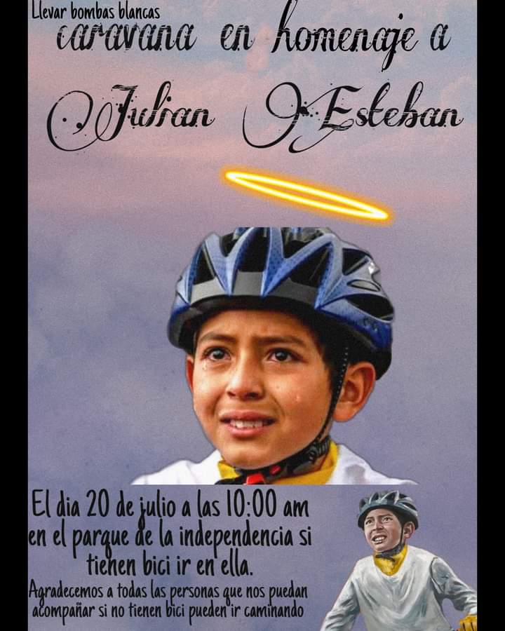 “Hemos organizado para la entrada a la Catedral Diocesana, un recibimiento en calle de honor con los niños de las escuelas de formación, quienes con sus bicicletas, globos y rosas blancas, le harán un homenaje a Julián Esteban. Vamos a transmitir en directo a través de las redes sociales, así que invito a que todos nos unamos en oración por el eterno descanso de Julián y el dolor de su familia. Este es un hecho lamentable desde todo punto de vista, por eso desde el gobierno Municipal vamos a lanzar una gran campaña de prevención y respeto para salvaguardar la vida de los deportistas que, como Julián, constantemente arriesgan sus vidas”, dijo el alcalde Wilson García.