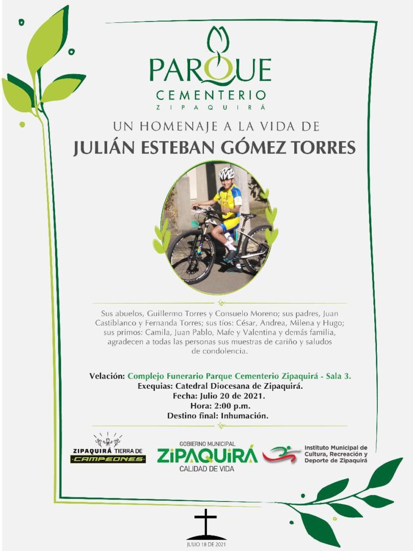 El gobierno Municipal, a través del Instituto Municipal de Cultura, Recreación y Deportes de Zipaquirá, organizó un sentido homenaje a Julián Esteban, promesa del ciclismo, quien pertenecía a las escuelas de formación del IMCRDZ y quien lamentablemente perdió la vida el día de ayer cuando entrenaba con sus familiares, hecho que ha convertido a Julián por segunda vez, en noticia nacional de dolor, después de ese histórico triunfo de Egan Bernal en el Tour.