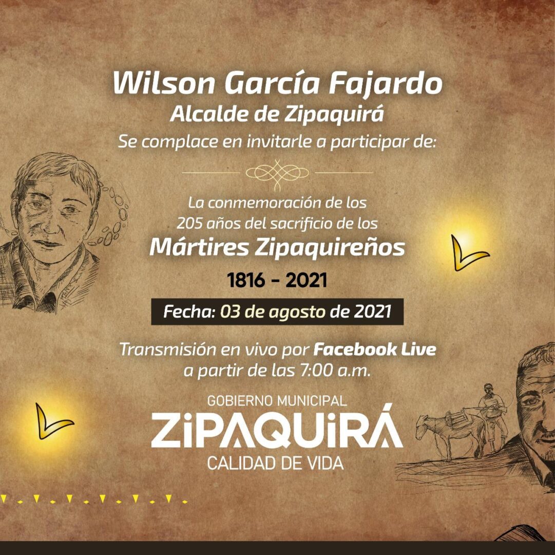 La administración Municipal invita a la ciudadanía a unirse con este homenaje que representa la lucha de estos hombres y mujeres que dieron su vida por la independencia del país en 1816, izando el pabellón de Zipaquirá y siguiendo desde los hogares, la transmisión por Facebook Live, la cual también se podrá ver a través de Gente Activa.