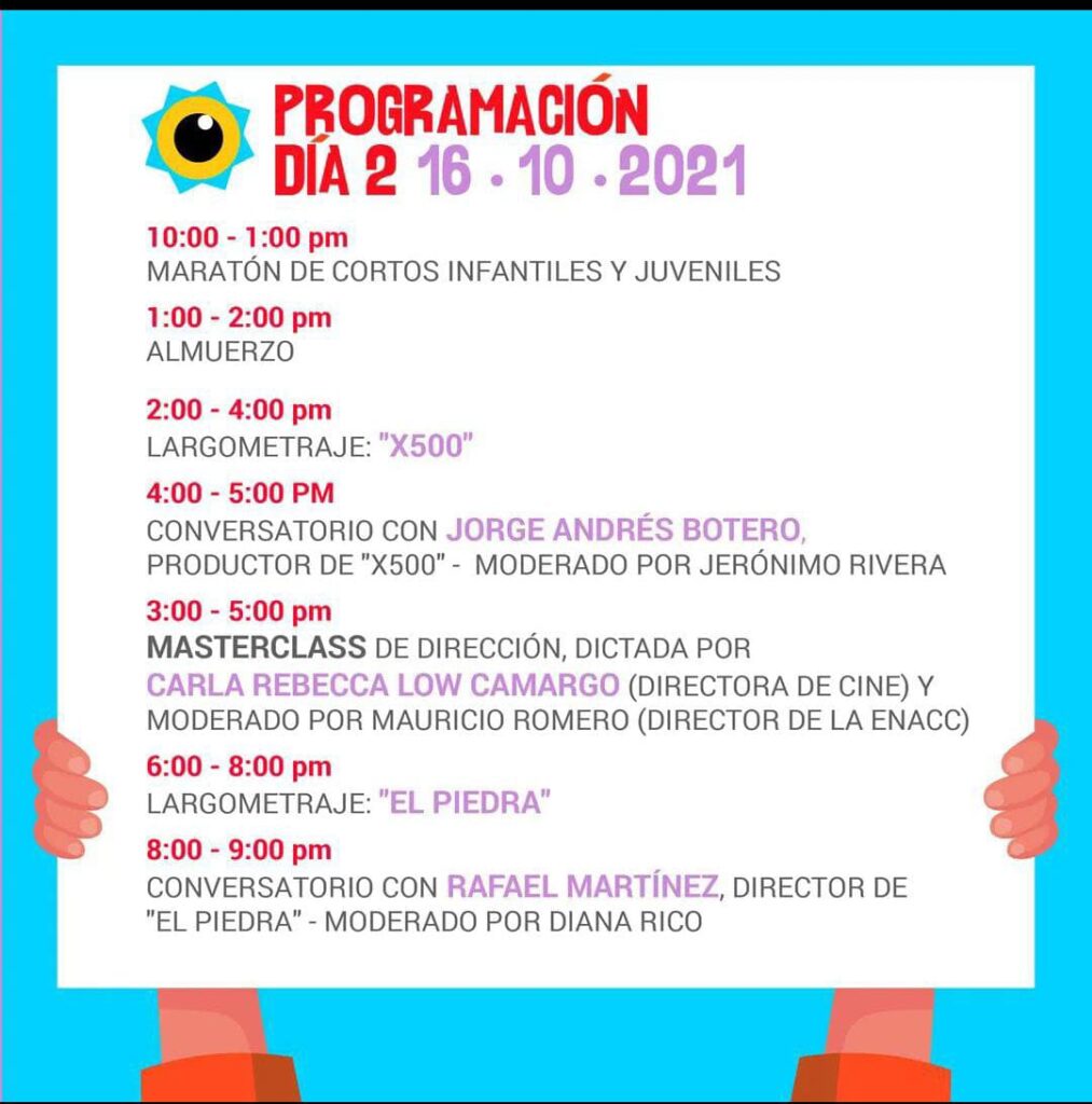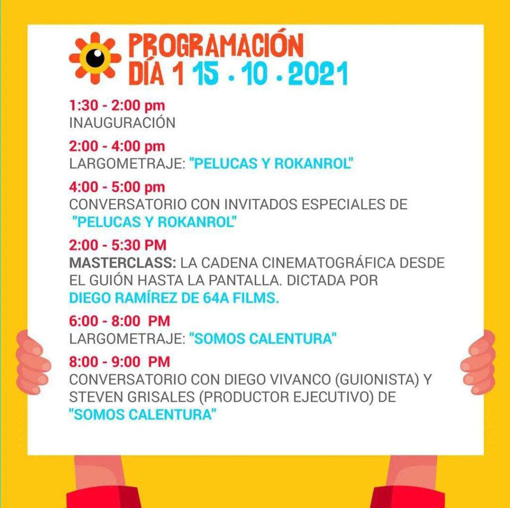 El evento se inaugurará mañana a partir de las 2:00 p.m., e irá hasta el domingo a las 4:00 p.m., con la participación de compañías de Chía, Bogotá, la región y aliados que se han sumado a esta iniciativa. «Son tres días de festival 15, 16 y 17 de octubre, cargados de conversatorios, masterclass, talleres y producciones como cortos infantiles y largometrajes, que podrá disfrutar el público en general”, expresó Héctor Emilio Moncada, gerente del Instituto Municipal de Cultura y Turismo de Cajicá.