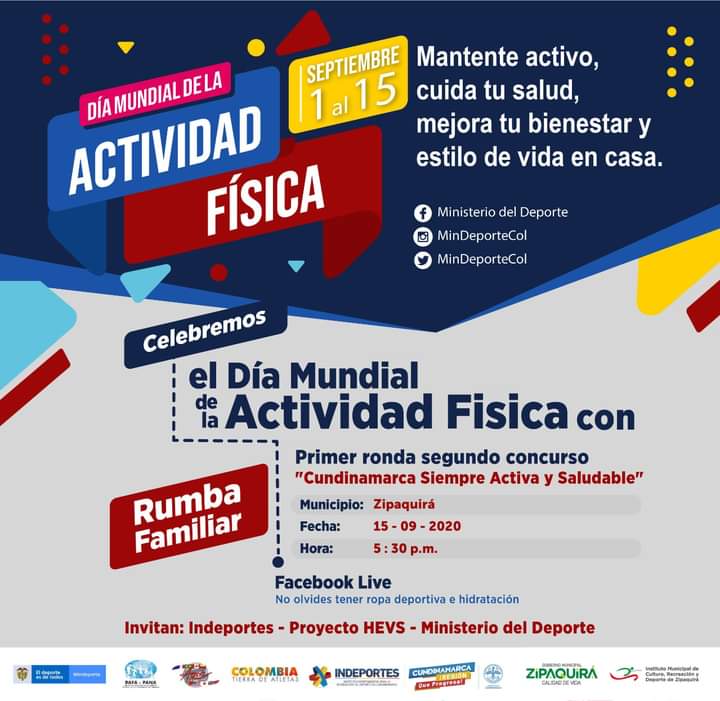 Para conmemorar el Día Mundial de la Actividad Física, mañana martes a las 5:30 p.m se efectuará la primera ronda del concurso «Cundinamarca Siempre Activa y Saludable», organizado por el Instituto Departamental para la Recreación y el Deporte de Cundinamarca.