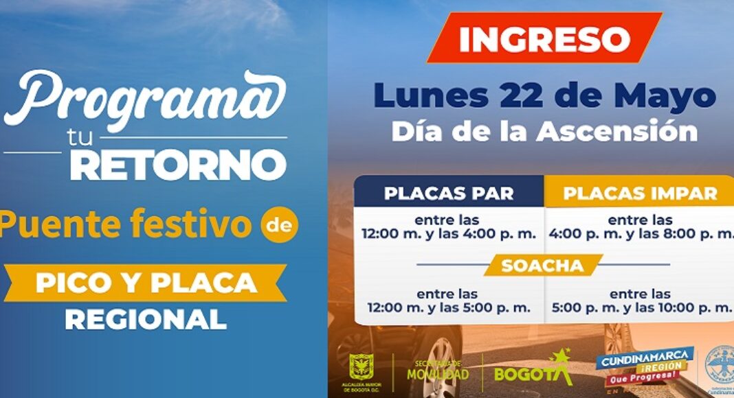 Asimismo, el lunes 22, habrá Pico y Placa Regional en las ocho entradas a Bogotá, donde el ingreso por la Autopista Sur tiene un horario diferente: