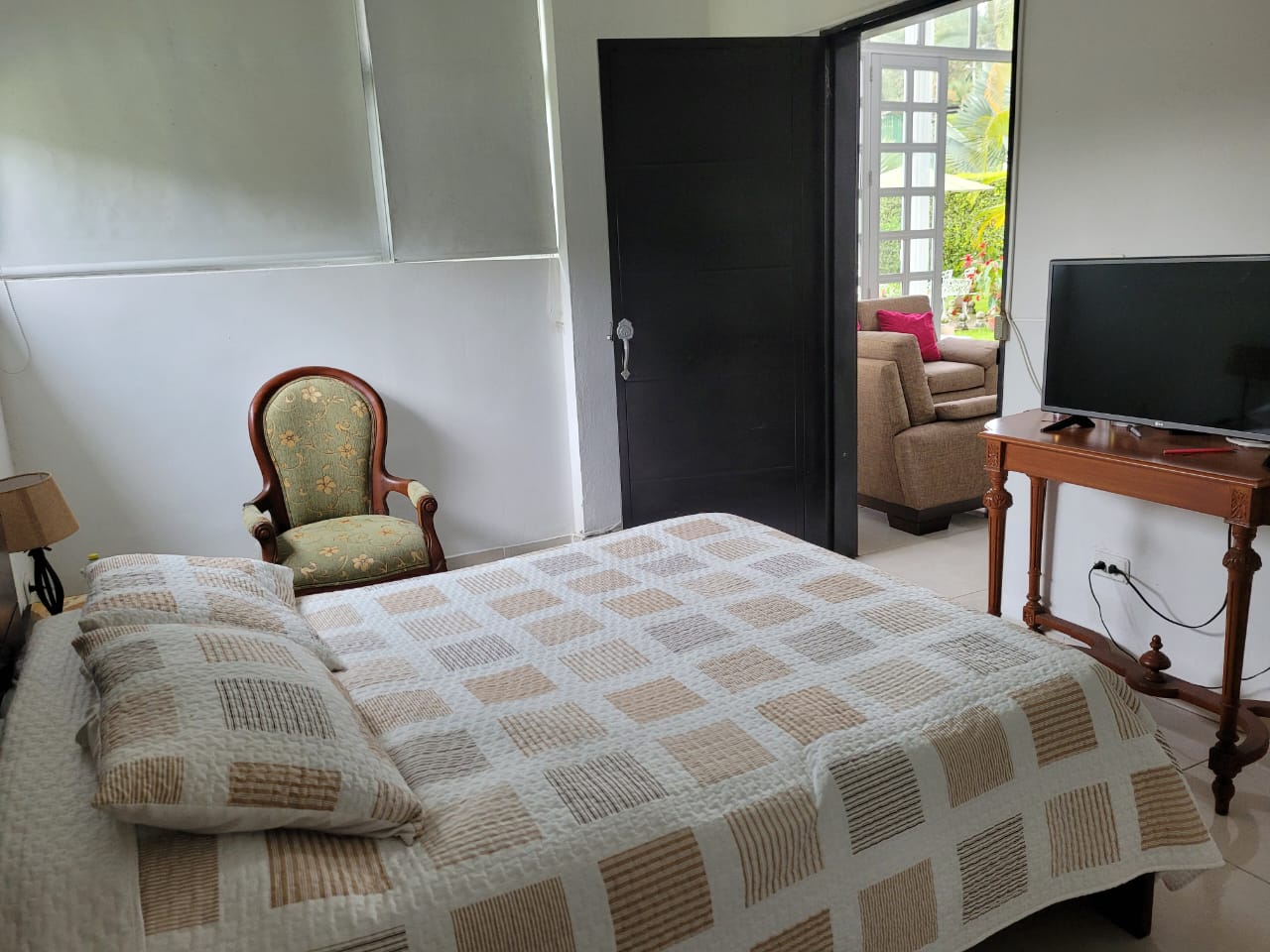 Bonita, amplia y cómoda casa campestre en el conjunto cerrado El Paraíso. La Casa, ubicada a 50 metros de la vía Bogotá-Girardot, a 2 Km del municipio de Silvania y a 4 Km de Fusagasugá, tiene un área construida de 200 M2 en un lote plano de 1.000 M2. Con abundante luz natural, el diseño contempla un solo piso con altillo en el que hay dos terrazas laterales. Consta de zona social (Comedor, cocina abierta con Isla, sala, un baño y sala de Tv); habitación principal con vestier y baño; habitación con baño y ducha. Área para ropas (lavadora o torre y lavadero). En el jardín posterior, se encuentran dos habitaciones independientes, una doble con baño y otra con dos espacios: uno para una cama doble y dos camas sencillas; esta habitación también cuenta con baño y ducha.