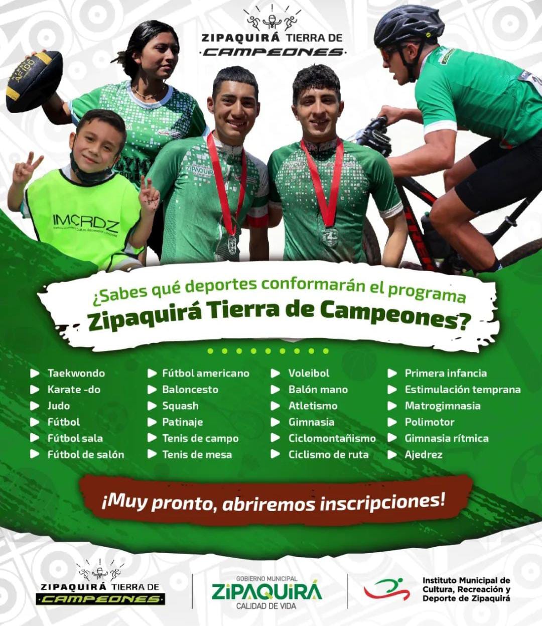 Así mismo, Espinosa informó que “La próxima semana sale el link de inscripción a las escuelas de formación, nuestros formadores están en la planificación de las actividades que van a desarrollar en más de las 22 escuelas de formación que tiene el instituto para que los niños y jóvenes puedan disfrutar y ver en el deporte esa posibilidad de construir proyecto de vida. Por otro lado decirles que este año se harán los Juegos de Cundinamarca, la gran apuesta deportiva que tiene nuestra ciudad, queremos ganar estos juegos; tenemos los deportistas, los entrenadores, contamos con un gran equipo interdisciplinario con el apoyo el municipio a todos los deportistas y pensamos que en el mes de agosto cuando se desarrollen esos juegos Zipaquirá será ese municipio líder en materia deportiva, de esta manera el deporte se reactiva en nuestra ciudad.”