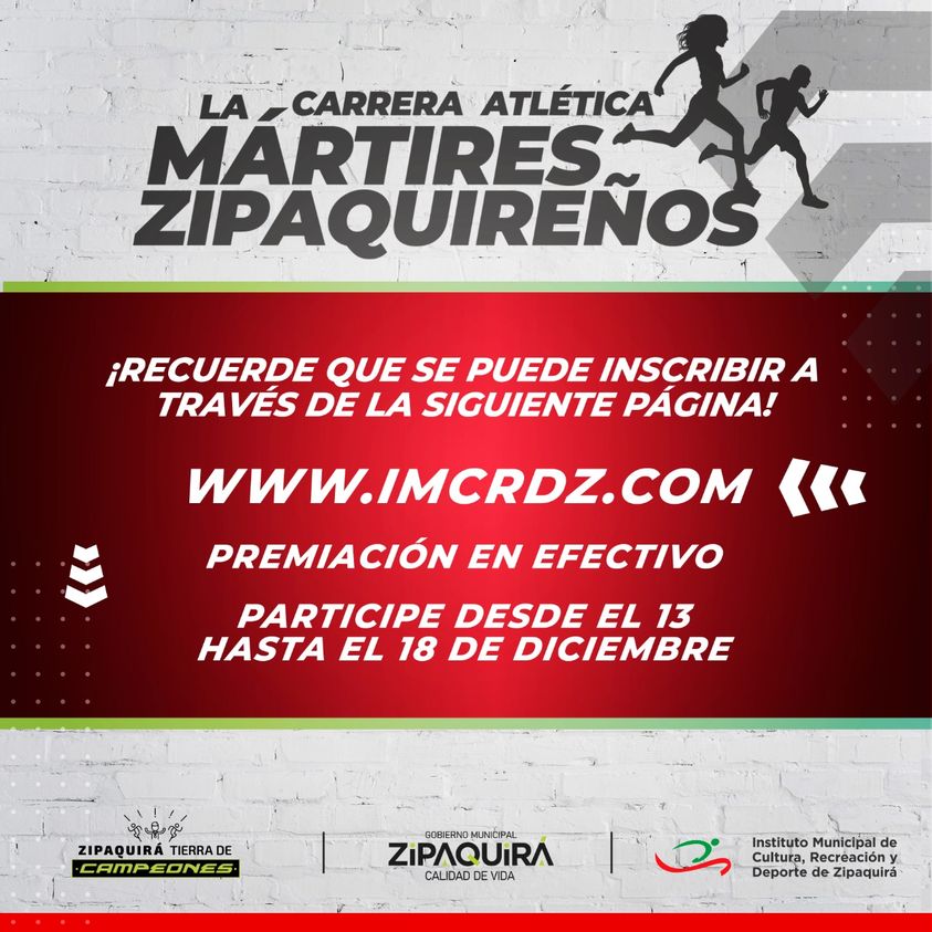 Al nivel de las más importantes pruebas del atletismo internacional corridas este año afectado por la pandemia del Covid 19, la carrera atlética, “Mártires Zipaquireños”, será virtual. En efecto, con toda la tecnología y logística, el personal del Instituto Municipal de Cultura, Recreación y Deportes IMCRDZ gerenciado por el atleta zipaquireño de talla internacional, Freddy Espinosa, han diseñado una prueba de 5 kilómetros para que pueda ser corrida desde cualquier parte del mundo “Todo el que desee participar lo puede hacer ingresando a la página del Instituto, donde tenemos la información muy precisa. Es llenar el formulario de inscripción y al pagar se le genera automáticamente el número de competencia. Hoy la tecnología permite el seguimiento con toda la información del atleta y al terminar su prueba, no interesa el lugar donde se encuentre, se genera un registro con todos los datos requeridos” dijo a Gente Activa, Freddy Espinosa.