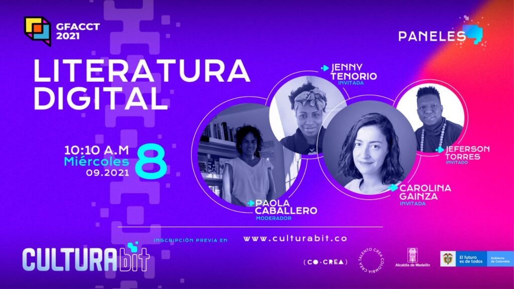 Como parte de este certamen, se adelanta el evento digital Cultura Bit, que se suma por segundo año consecutivo a la GFACCT 2021 para ampliar la cultura digital a través de diferentes actividades. Andreiza Anaya, coordinadora de la Dirección de Audiovisuales, Cine y Medios Interactivos del Ministerio de Cultura de Colombia, en diálogo con Gente Activa, dijo que “Esta experiencia es un punto de encuentro a través del cual se transforma la manera de contar la cultura digital, patrimonio, los nuevos medios, las prácticas artísticas, los museos y otros espacios de conexión entre las manifestaciones culturales y los entornos digitales; todo desde una perspectiva del humanismo digital como esquema que nos mueve a restaurar nuestros valores en el uso y los fines de la tecnología, que debe estar siempre al servicio de cada individuo para hacer la vida más sencilla y plena. Es un gran evento abierto a los zipaquireños, a todos los colombianos, a todos los que quieran ingresar a un nuevo mundo de posibilidades tecnológicas totalmente gratis. Este año participaremos con la narrativa y las culturas digitales, todo lo que tiene que ver con el patrimonio. Tendremos 4 talleres de formación con expertos en temas de literatura digital, la industria de los video juegos, podcast, tras media entre muchos otros.”